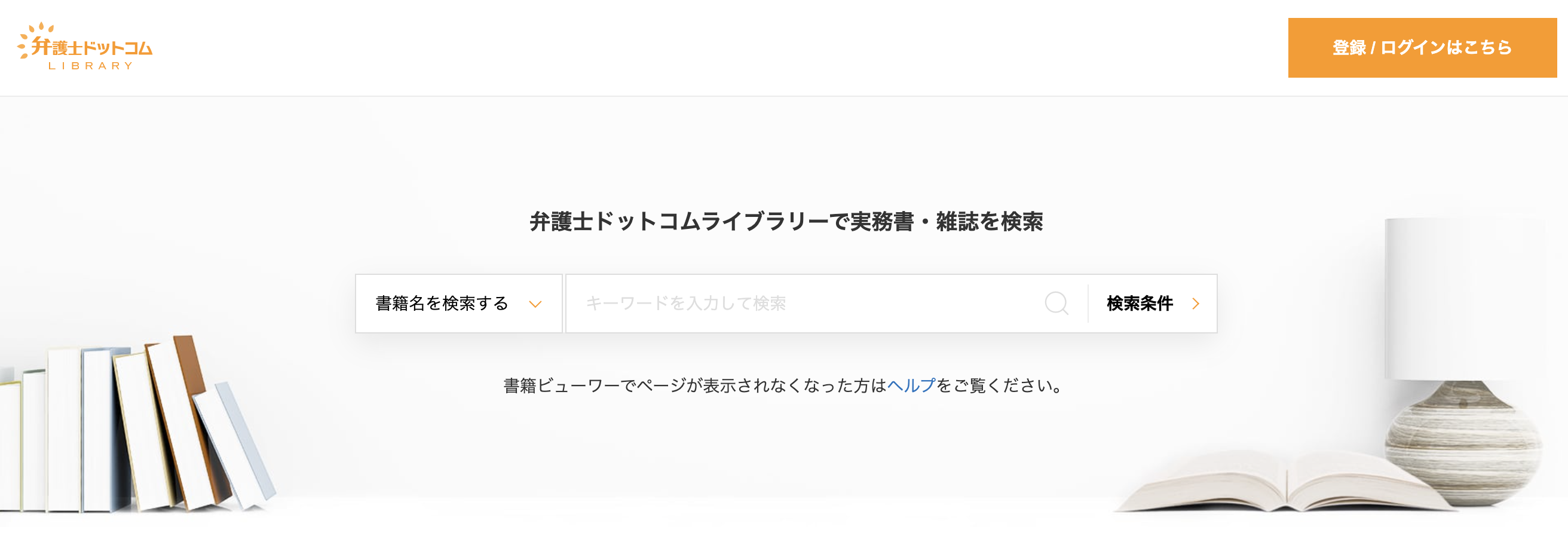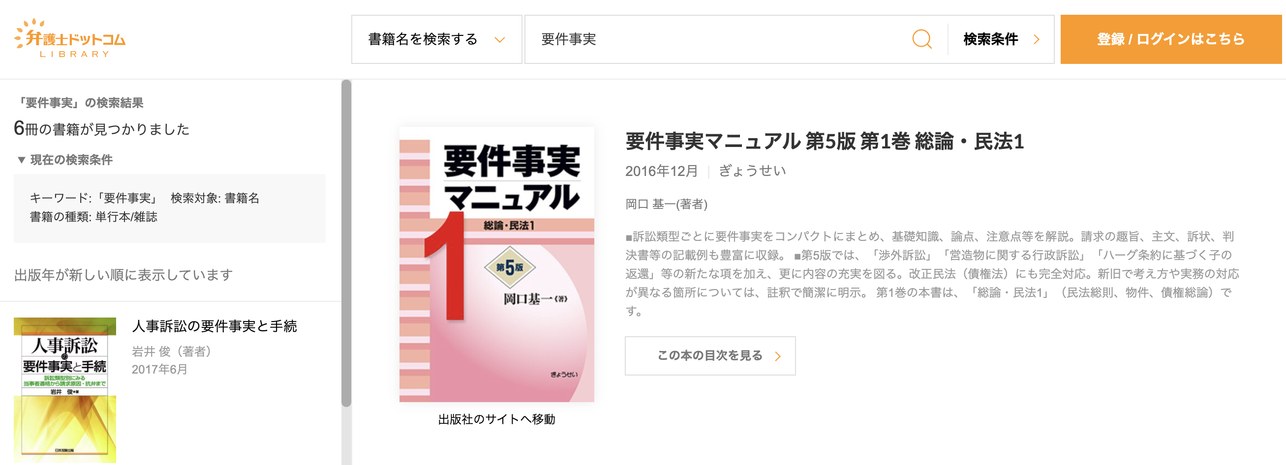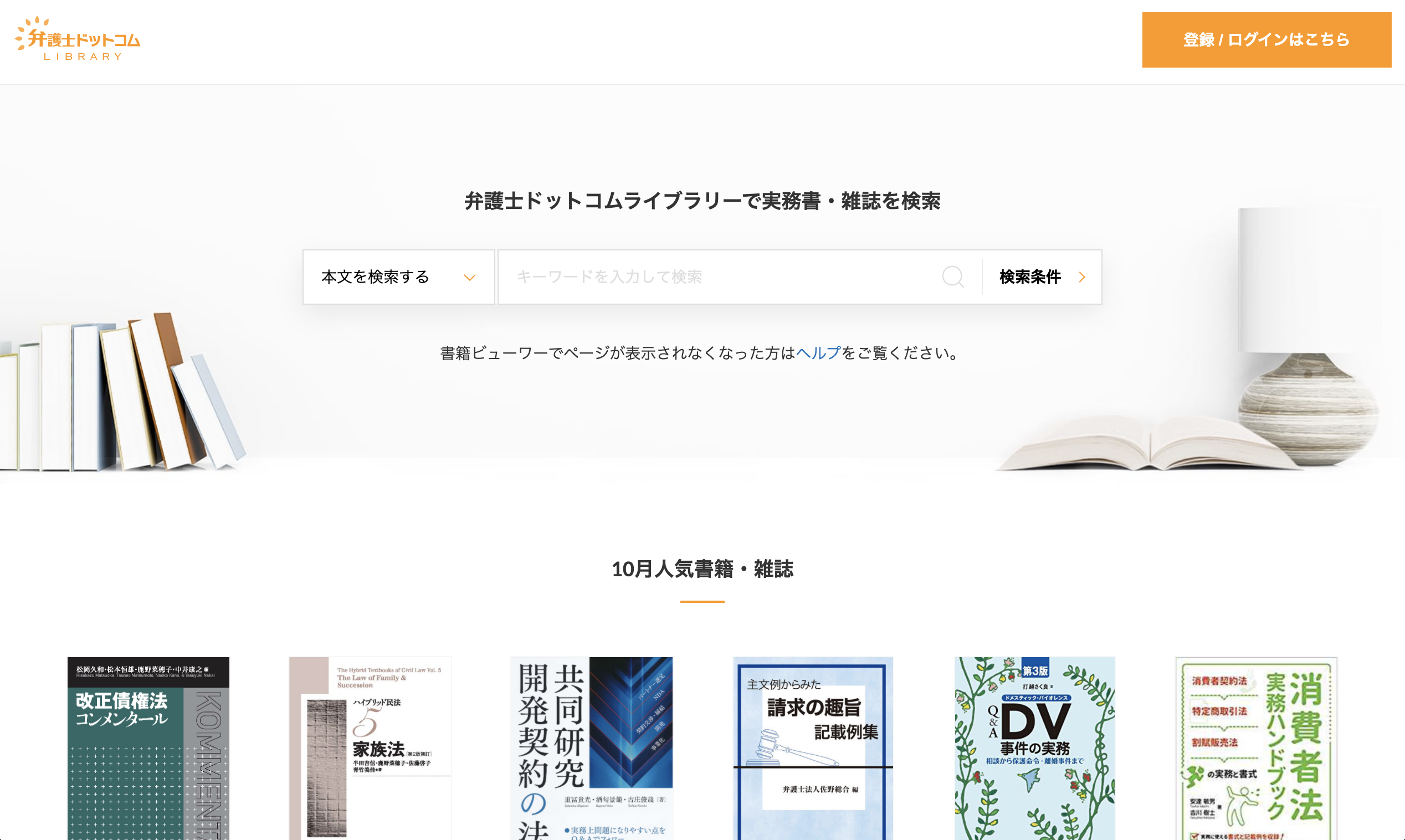 サービスの利用については、現在、弁護士ドットコムに登録している弁護士の方、または弁護士事務所の事務所単位で利用する方のみ登録可能です。ただ、書籍の検索は誰でも可能なので、動かしてみたい方はトップページから検索ワードを入力してみてください。