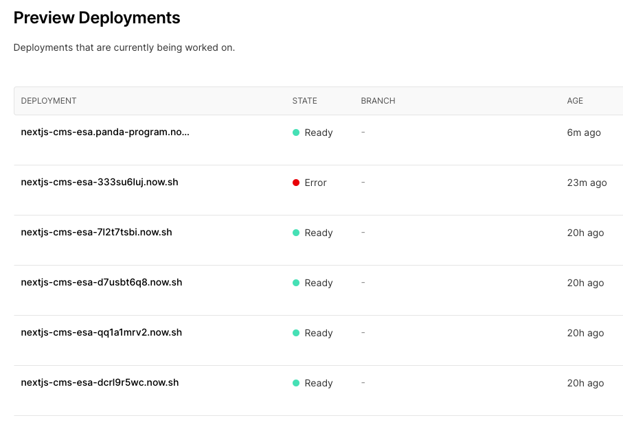 たった1コマンドでデプロイできました。https://next-blog-esa.panda-program.now.shはPreview用のURLです。Vercelのデプロイ方針は、develop, staging, productionではなく、Develop, Preview, Ship(Production)です。このPreview用のURLはデプロイするたびに作成されます。